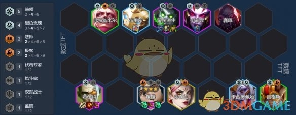 注意危险人物下,会给爆爆提供统领羁绊,所以一定是开6统领为主。以黑玫统领的玩法会相对稳定,还有希尔科补很多输出;如果有月光/终极英雄升四星,前排的黑玫搭配也能替换成伏击组。