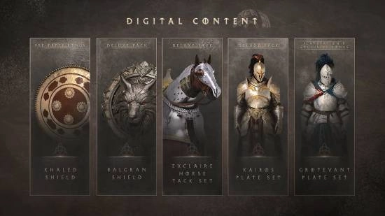 豪华版组合包内含:巴尔格兰盾牌、卡伊洛斯板金套装以及迪克拉尔马具套装。
