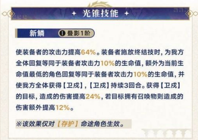 在队伍缺乏攻击力的情况下,也可以考虑选用其他高基础攻击力的非存护命途光锥,比如刻律德菈的专属光锥《金血铭刻的时代》。