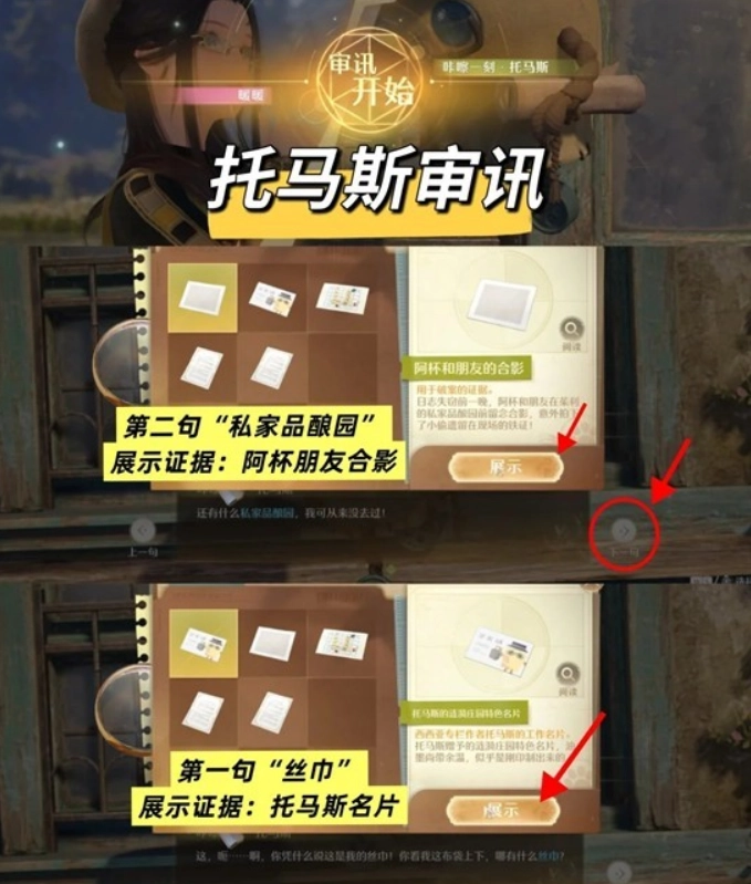 【审讯举证】留意右下角,能够调整【下一句】