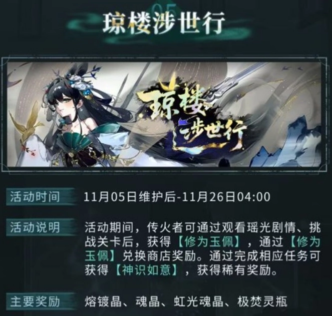 活动说明:通过观看瑶光剧情、挑战关卡后,获得「修为玉佩」,通过「修为」兑换商店奖励。
