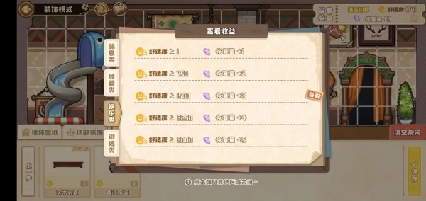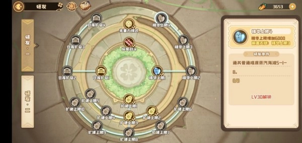 在建筑方面,我目前等级为17级,发现能够解锁八个精华房间(等进行扩建研究后,数量应该还会增加)。每个房间每小时产出最高为5,一天下来总共是960,如此计算,17天就能兑换一个SSR。至于上限,要达到30级才能有16000。