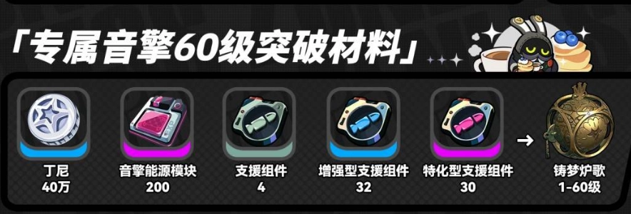 专属音擎1至40级的突破材料如下:丁尼10万、音擎能源模块50个、支援组件4个、增强型支援组件32个。