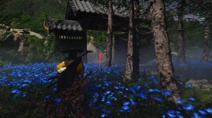 进入墓园后,径直向前行走,抵达花园中央位置时会触发开场动画。