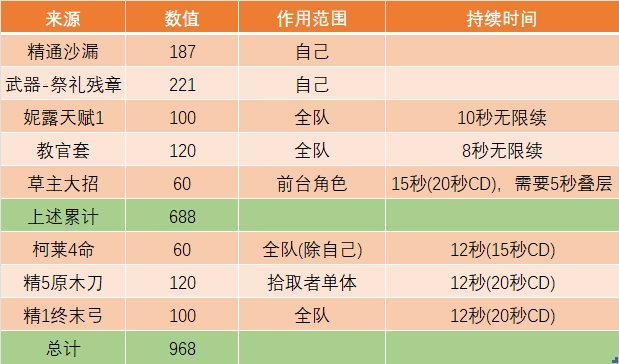 不过队伍成型后就没什么提升空间了。(高精通状态下,伤害增幅很小;也没有其他乘区能够进一步升级)