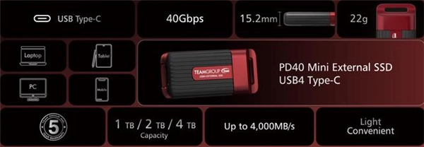它的体积和普通U盘差不多,重量只有22克,有1TB、2TB和4TB三种容量可以选择。