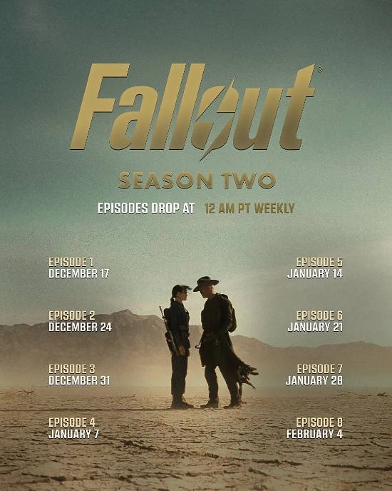 根据真人剧集《辐射》官方X账号发布的消息,备受期待的第二季共8集的排播时间表已正式确定,该剧集将在Amazon Prime Video独家播出。