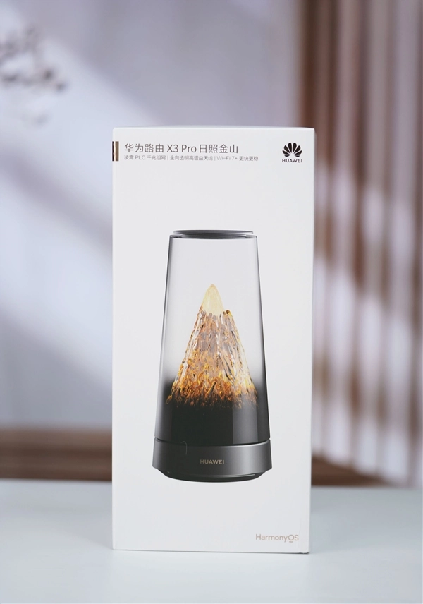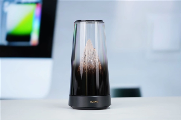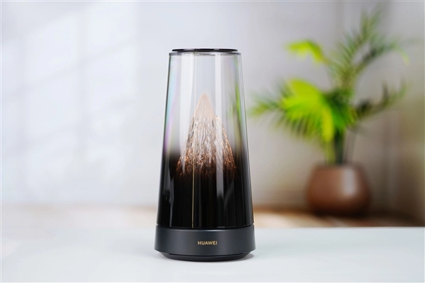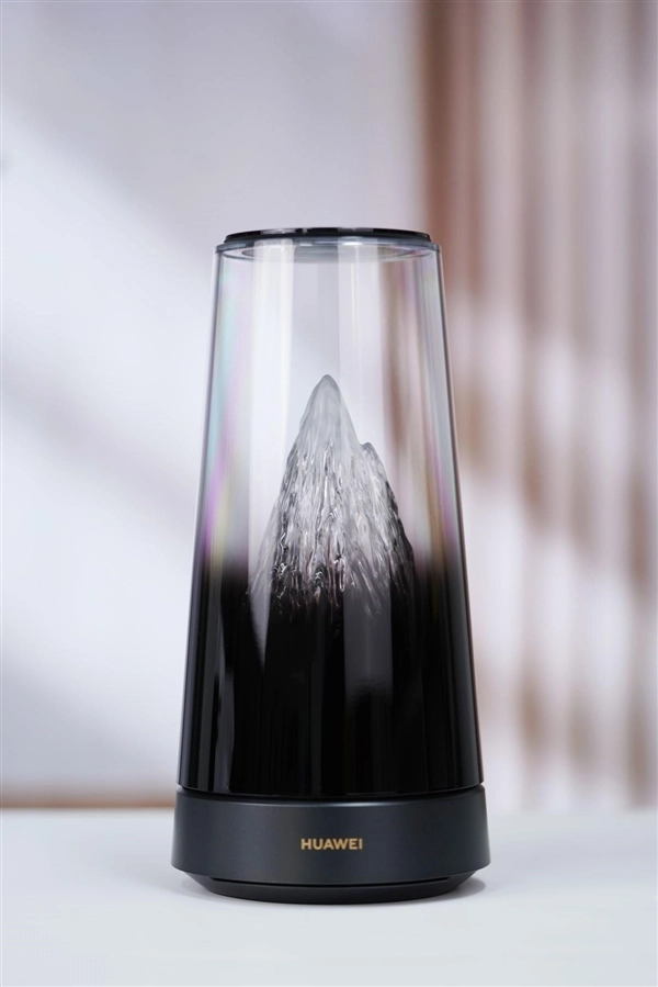 华为路由X3 Pro采用圆柱形机身设计,上半部分为透明外壳,内部嵌入微缩雪山景观,能随日出日落的光线变化呈现明暗交替,生动展现“日照金山”的视觉效果。