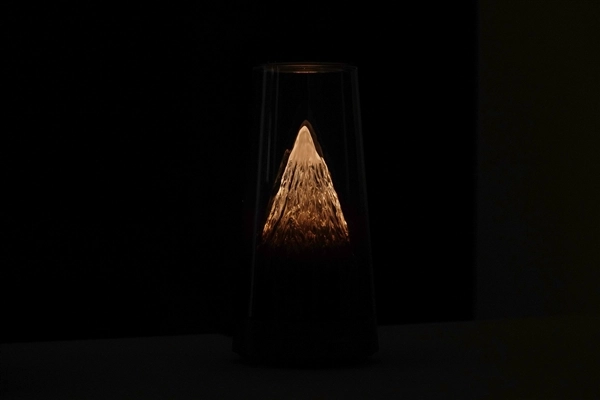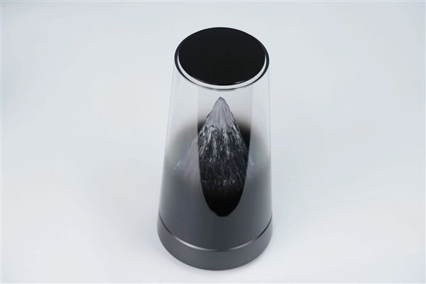 实际上,雪山造型的中央设有天线,并且是业界首款透明天线。它采用微米级工艺在透明材质上蚀刻电路,巧妙地隐藏在雪山造型之中,摆放在桌面上就像一件艺术品。