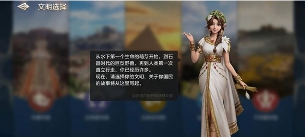 玩家们在首次进入游戏后,可以在五大文明选择一个做为你的初始文明,五大文明的介绍上面已经给大家讲解过了,选择哪一个文明决定了玩家在游戏中的大致方向。