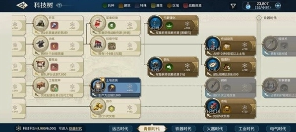 游戏正式启动后,内置的新手引导会带领玩家逐步升级文明科技树——这是游戏的核心环节,毕竟解锁兵种、建筑和各类资源的对应功能,都得依托科技树来实现。随着科技树推进到特定阶段,文明所处的时代也会随之演变,从远古时代依次过渡到青铜时代、铁器时代,最终抵达当前版本的最高阶段电气时代。