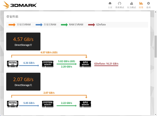 3DMARK DirectStorage功能测试是DirectX12 Ultimate的重要特性,它可以帮助PC更快的加载游戏,充分释放NVMe固态硬盘的潜力。经实测,长江存储PC42Q1TB启用DirectStorage之后,性能提升高达120.4。
