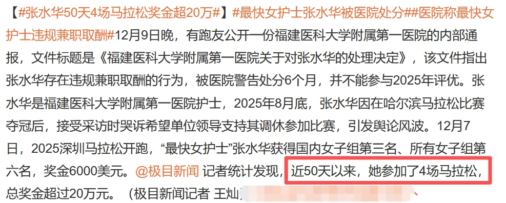 既是护士,又是马拉松赛场上的常客,张水华咋就被医院处分了呢?