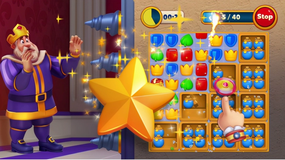 这款游戏以Q版卡通风格呈现,核心玩法为三消,并巧妙融合了装饰、竞速、对抗与冒险等多元元素。不过相较于同类三消游戏,它在体验层面进行了不少优化:比如简化操作流程,通过快速动画提升游戏流畅度,同时加快了整体节奏,有效缩短了玩家的单局游戏时长。在《Royal Match》里,想要顺利通过前20关,必须掌握多道具消除组合出的特殊工具的使用技巧,否则很难完成这一阶段的挑战。个性化的装饰系统、充满挑战的关卡任务以及引人入胜的神秘冒险,都已准备就绪,等待着你的探索。