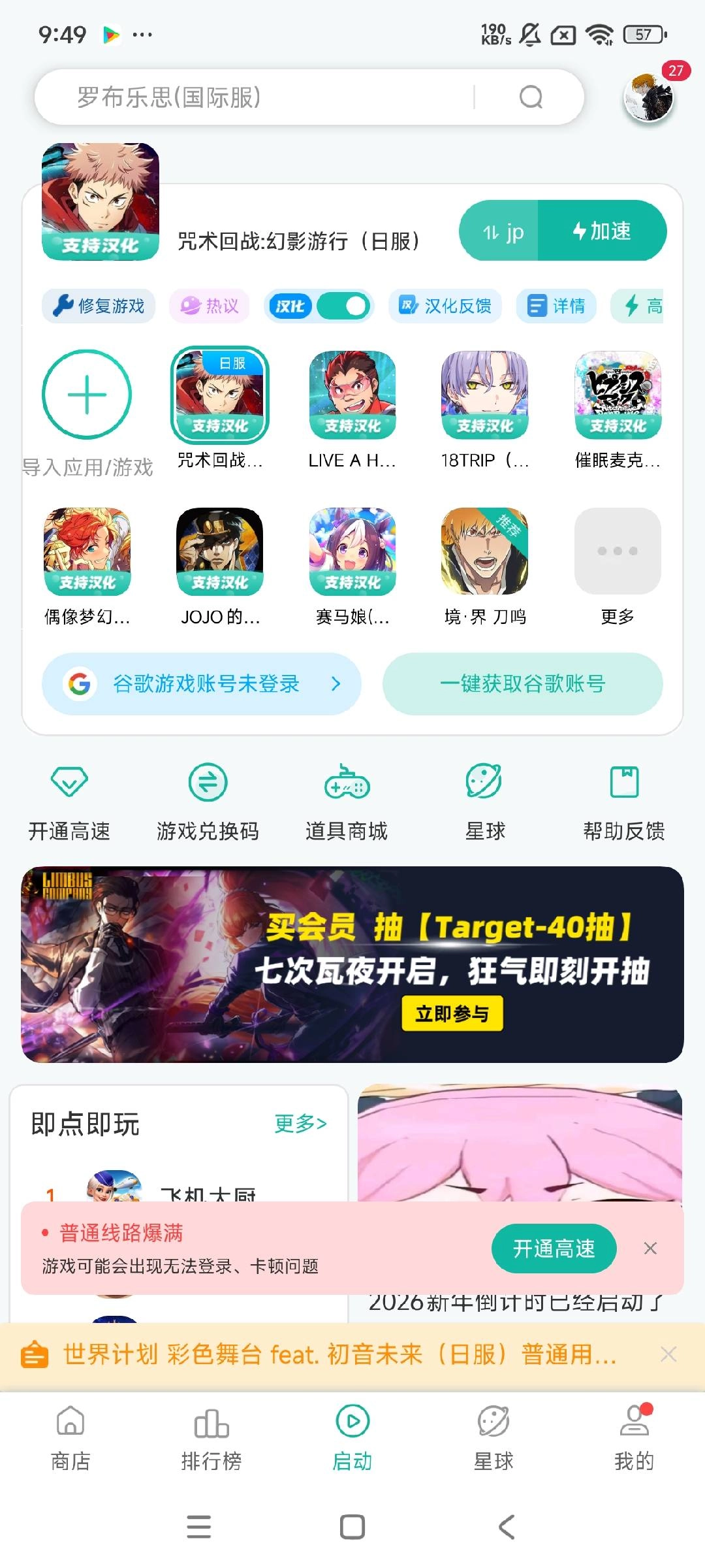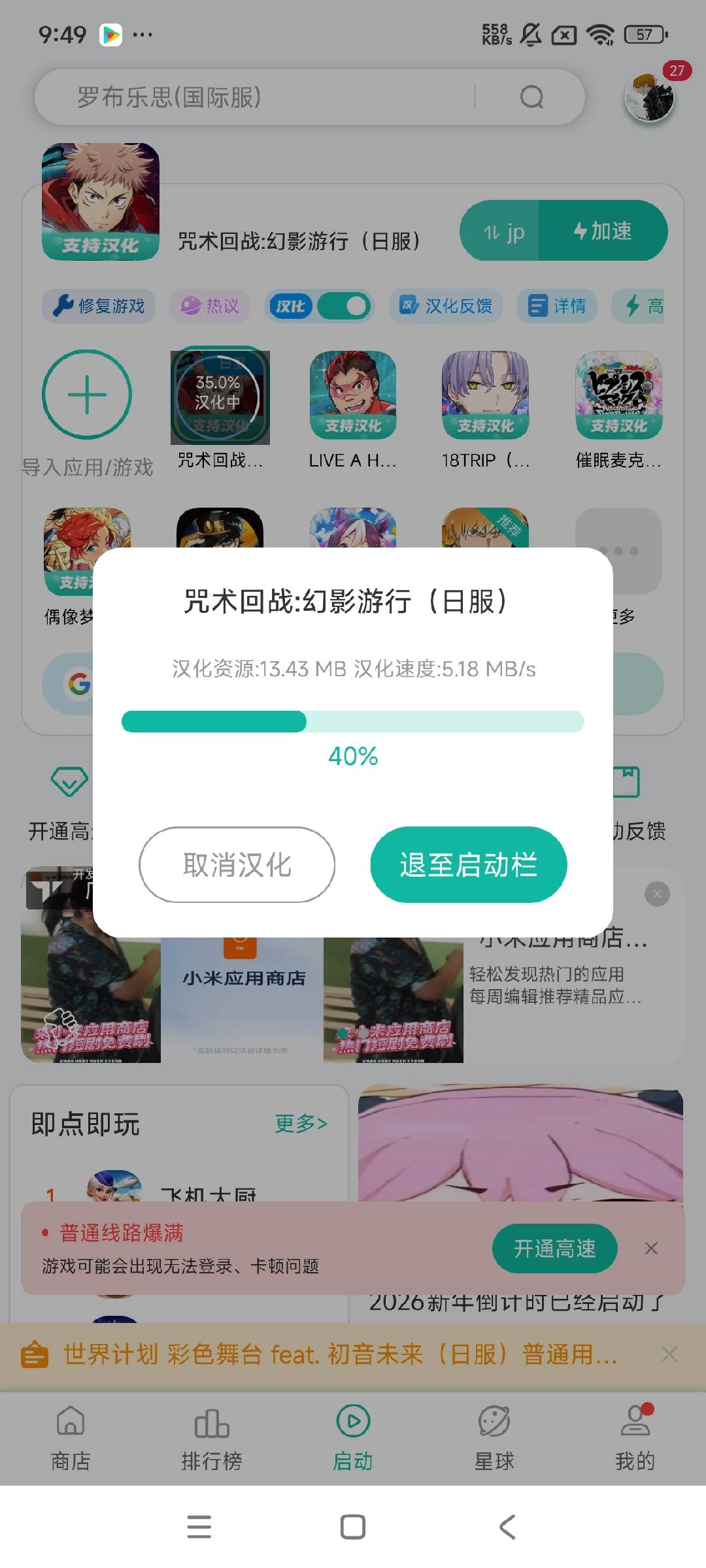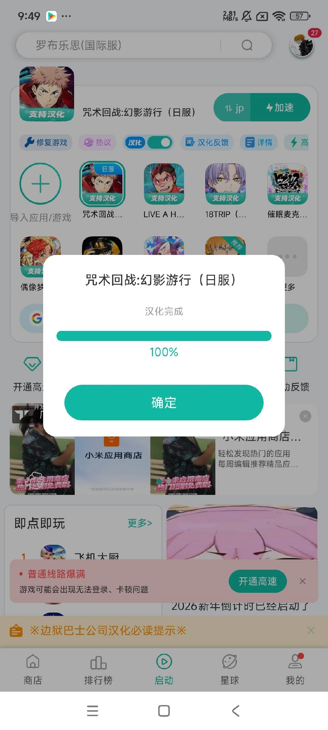 目前《咒术回战:幻影游行》日服游戏的汉化工作已经完成。点击游戏图标后,系统会自动进行加速并启动游戏,这样就能游玩汉化版的《咒术回战:幻影游行》日服了。