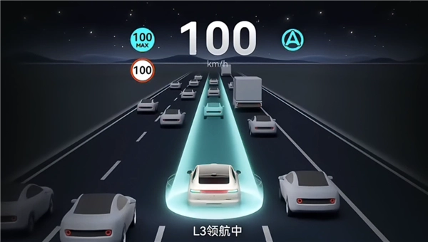 同时,官方还首次对外公布了L3级自动驾驶专属的人机交互界面。从展示内容可知,当该功能启动时,系统会通过语音提示“L3自动驾驶已激活”;功能开启后,界面则会显示“L3领航中”的状态标识。