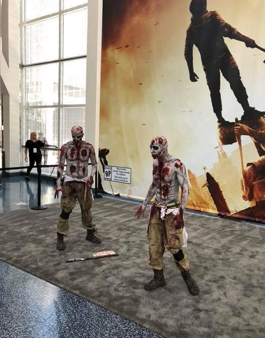 除了游戏本身,《消逝的光芒2》的开发商在本届E3展会上的宣传工作同样下足了功夫。现场随处可见的巨幅海报,还有逼真到难辨真假的僵尸角色扮演,无疑在E3展上赚足了观众的目光。