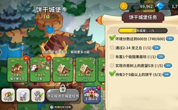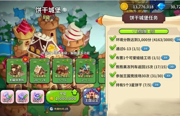 升级饼干城堡会消耗大量金币与材料,而获取这些资源的途径是完成任务。