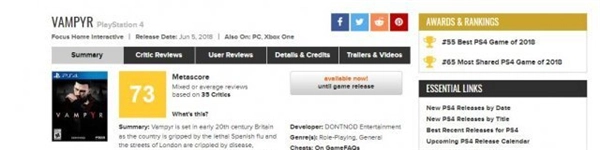 在Metacritic平台上,该作品的平均评分达到了73分。