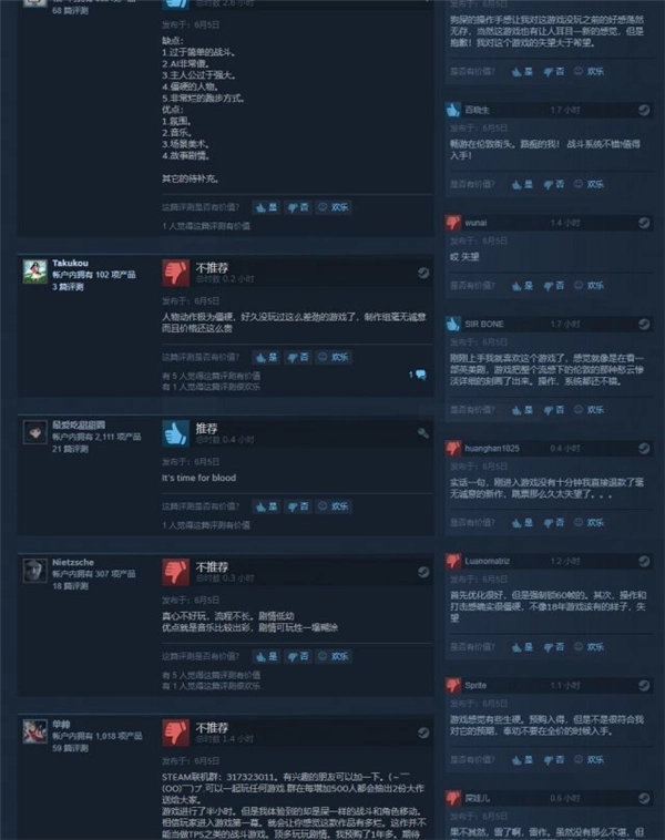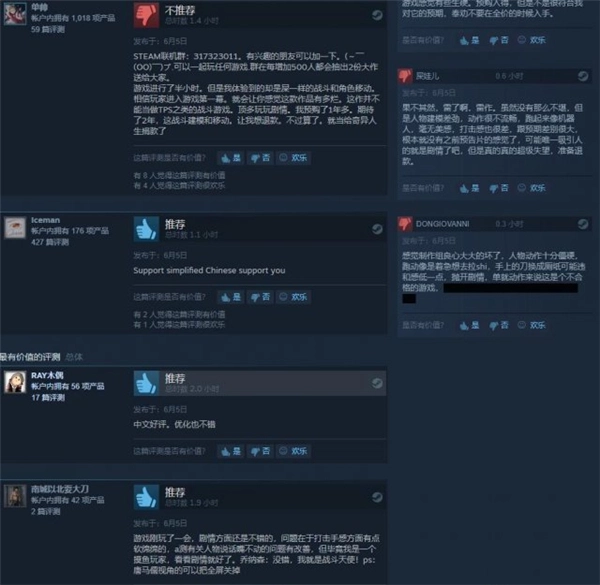 Steam国区玩家的评价显示,大家普遍觉得游戏里的人物动作比较僵硬,战斗系统的表现也不太合格。