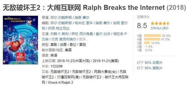 《无敌破坏王2:大闹互联网》是《疯狂动物城》原班创作团队的作品,故事围绕主人公拉尔夫和云妮洛普展开,他们将在互联网世界里踏上寻找游戏《甜蜜冲刺》中遗失拼图的旅程。