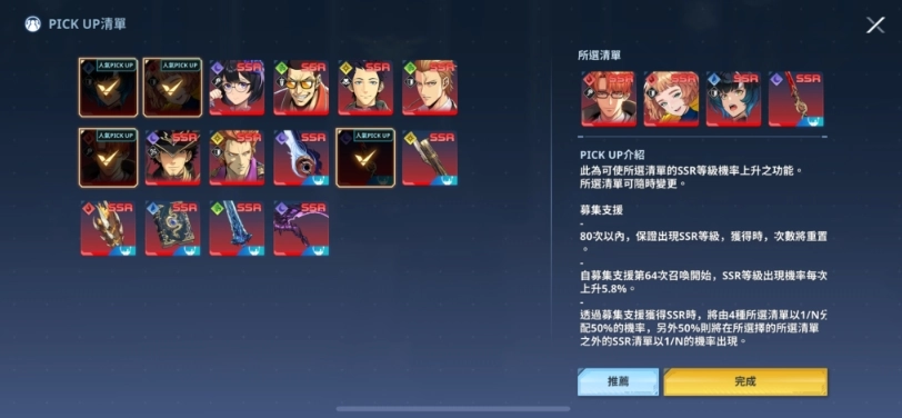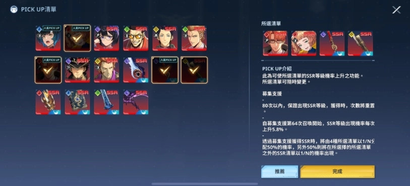 由于自由设计募集能设置4种角色或武器来实现加倍效果,适合玩家针对强势的常驻角色或武器进行规划,在这份清单里确定设置方向主要有两种思路。