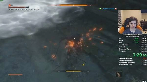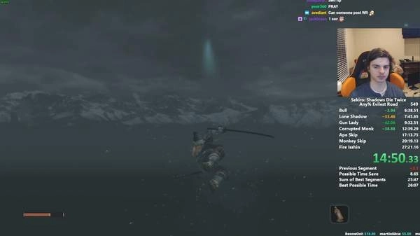 《只狼:影逝二度》的速通纪录再次被刷新,这次由美国玩家“Distortion2”创造。得益于新邪道玩法的发现,他采用了“底层-水生村-白花-屏风猿猴-弦一郎-修罗”的全新路线,最终以26分25秒的成绩完成通关。