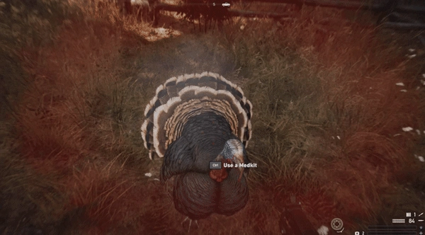 《孤岛惊魂5》里的火鸡能力过于强悍,甚至能击杀玩家操控的角色,这明显违背了常理。因此,育碧推出了1.02补丁来解决火鸡过强的问题。从下方的动图中可以看到,火鸡在连续啄击后接一个后空翻就将角色击倒,其强度确实超出了正常设定范围。