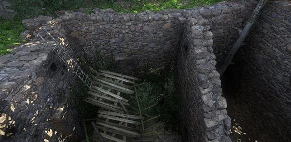 罗维那猎猪点有个有意思的地方,主角站在那个特定位置,蹲下后往墙那边的草丛里走,里面藏着一个暗洞,洞里有一具尸体和一个超困难级别的箱子,喝口酒壮壮胆,就能去开锁了。