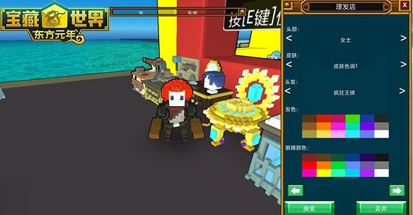 人靠衣装,美靠美妆!虽说《宝藏世界》里的一切都是色彩缤纷的方块构成,但论起颜值,小短腿们可从没服过谁!先不说五花八门的服饰、武器这些大件,单说给人的第一印象——头发!游戏里有个超神奇的理发台,在这儿你能随意调整形象:想当英气逼人的套马硬汉,或是软萌甜美的萝莉少女,切换起来毫无压力!理发台还能化妆呢,不死族风、海盗风,喜欢的面妆随便挑!再者,眼睛可是心灵的窗户,不管你想要金发碧眼还是深邃黑瞳,尽管大胆自定义!最后聊聊头发,不管男女,这儿都有几十种发型可选:小脏辫、爆炸头、淑女盘发……你想要的风格这儿全齐活!发色也能自由定义,七彩发色任你搭配!