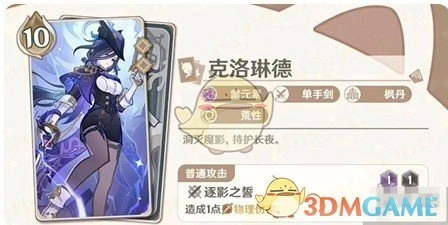 战斗行动:我方出战角色为克洛琳德时,装备此牌。