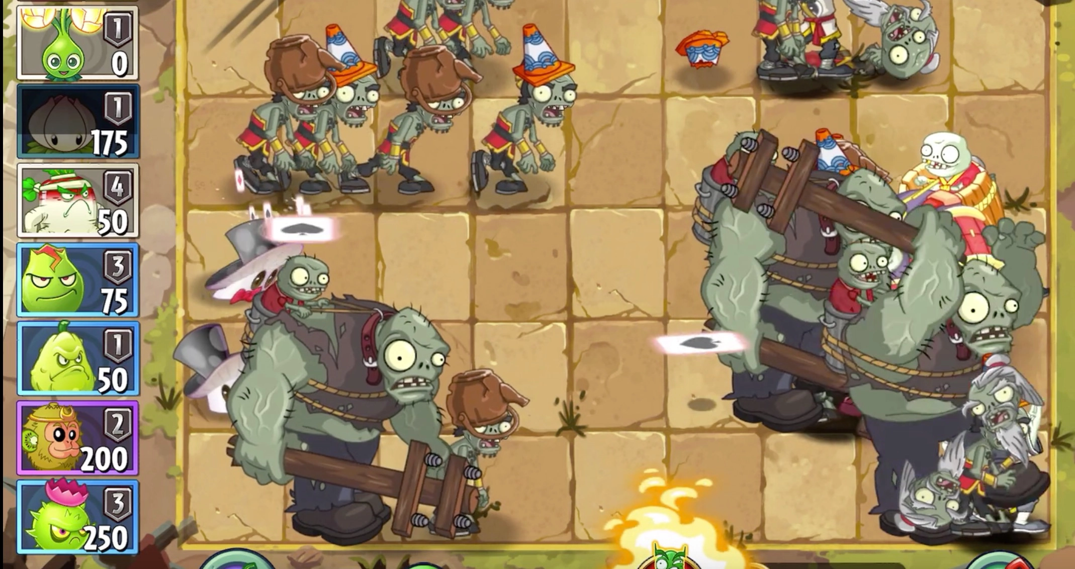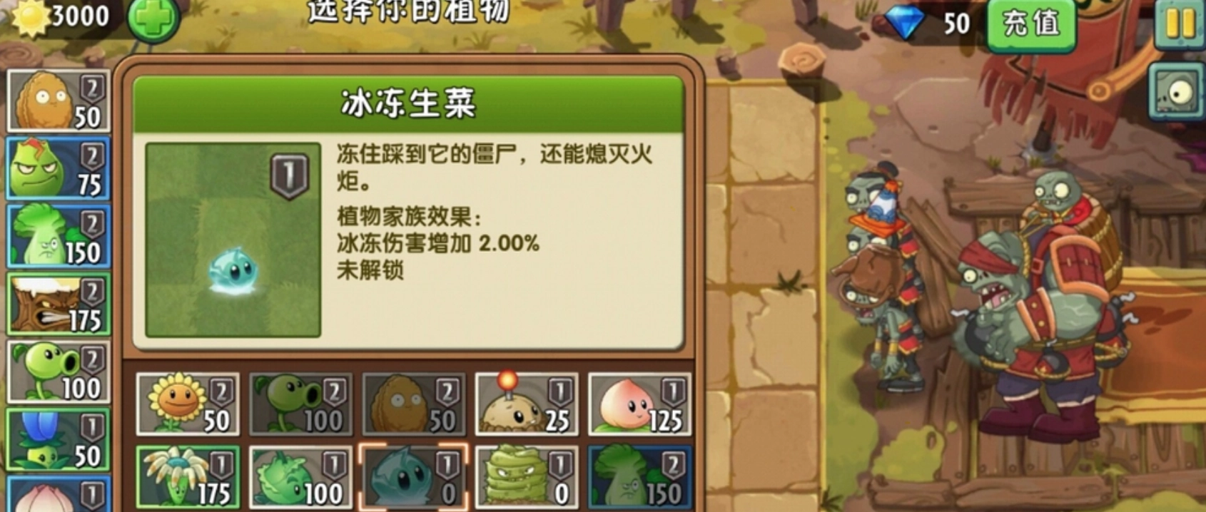 后面的僵尸挑战难度较高,我也会用冰冻生菜的大招把它们冻住,然后种竹员外进行攻击,得注意别用带火属性的植物把僵尸解冻了。