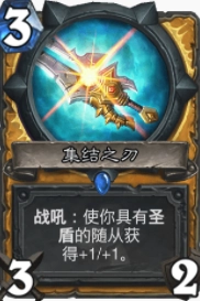 这套卡组在面对快攻卡组时,关键在于稳住四费阶段前的节奏;到了四费之后,直接用战斗号角打出一波铺场,再借助圣盾的高频率特性,通常就能战胜对手了。