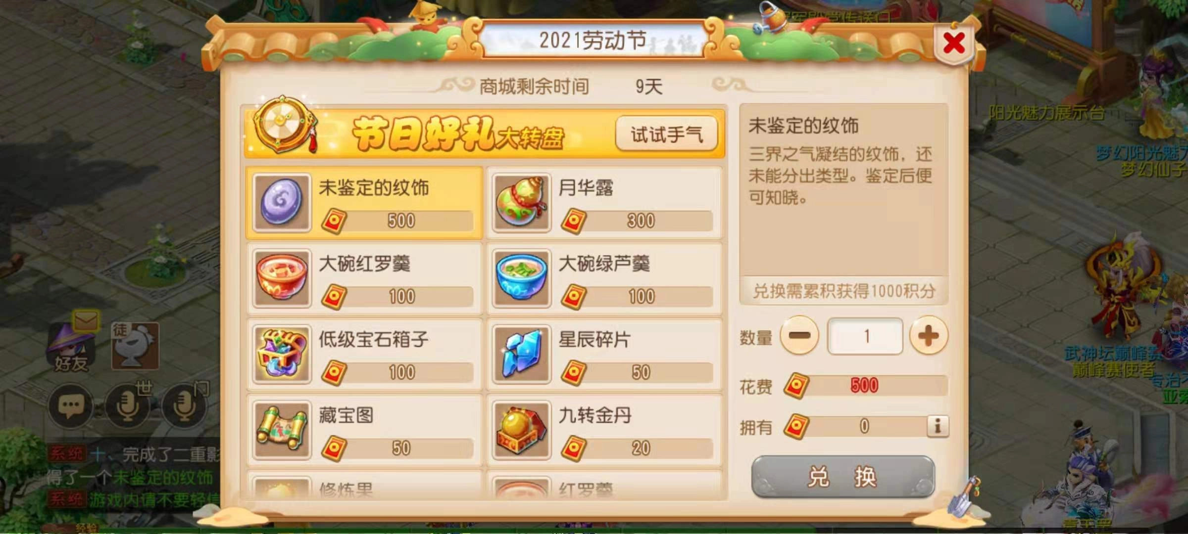 当玩家每日积累到足够的勤劳值,就能兑换阵法书、金柳露、银钥匙、七彩虹石、星辰晶石紫等道具。另外,玩家单日完成一个委托任务,就能得到30点节日积分,节日积分可用于兑换未鉴定的纹饰、月华露、红罗羹、绿芦羹、低级宝石、星辰碎片、藏宝图等道具。