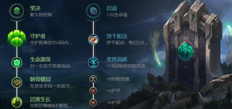 从锤石的属性来看,能知道他是个偏向保护的英雄。锤石虽然自身比较脆,但成长属性很高,到了后期还是能变得肉起来承担伤害,所以选择【骑士之誓】来帮ADC分担伤害就很有必要了。