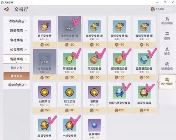 依次点击【背包】、【积分】、【冒险积分】,再点击【前往兑换】,最后选择【冒险奇珍】。