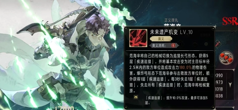 范海辛除了掌握战技外,还具备“正义独行”这一特性,该特性和他的攻击射程紧密相连。当他对目标造成伤害时,若目标距离超出基础攻击射程越远,所造成的伤害加成便越高,最高可提升至50%;反之,目标距离越近,伤害就会相应降低,最低能减少到50%。这一特性意味着玩家在战斗中需要巧妙借助地形与距离上的优势,优先攻击敌方后排单位,以此将范海辛的战斗潜能充分激发出来。