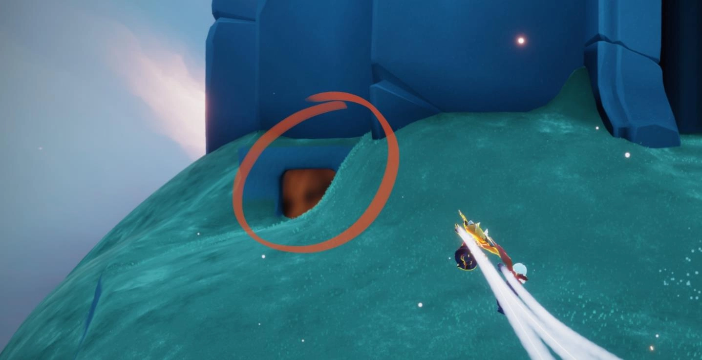 接下来要找的就是最后一个了,他是拒绝先祖。若想找到他,各位先来到这个台子上,进入后朝着前方的神庙飞去,在神庙左侧能看到一个洞口,第三个先祖就藏在这个洞里哦。