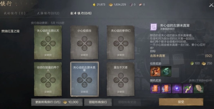 游戏内设有每日任务系统,被称作“侠行”模块。该模块每日会更新不同任务,到指定时间便会刷新新任务;若玩家当天未参与,错过时间后任务就会结束。由于任务有时间限制,难度普遍不高,耗时也较短。完成任务可获得丰厚的经验、抽卡道具及养成材料,很适合新手玩家通过每日任务快速提升等级,积累更多资源。完成当日任务后,还能消耗金币刷新任务,有机会解锁高品质任务,获取更丰厚的奖励。