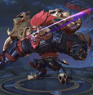 出场时的特效为:手中紧握着一把紫色战斧,周身萦绕着紫色光芒。