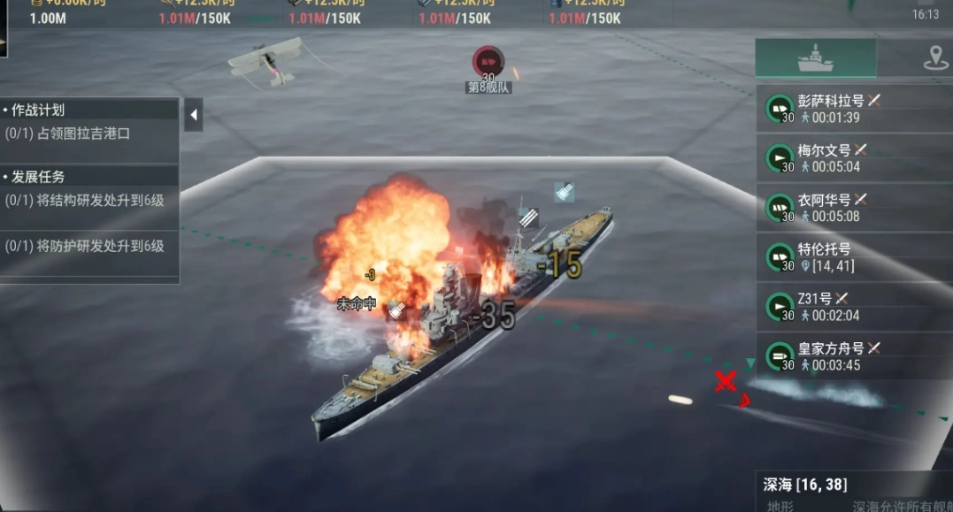 当玩家击沉对方所有驱逐舰后,即可对敌方大后方的护卫舰或巡航舰发起进攻;不建议直接攻击敌方战列舰,因其防御属性过高,可能导致玩家无法按时完成关卡。成功摧毁敌方大后方后,玩家就能赢得该关卡胜利。