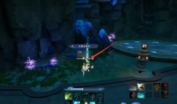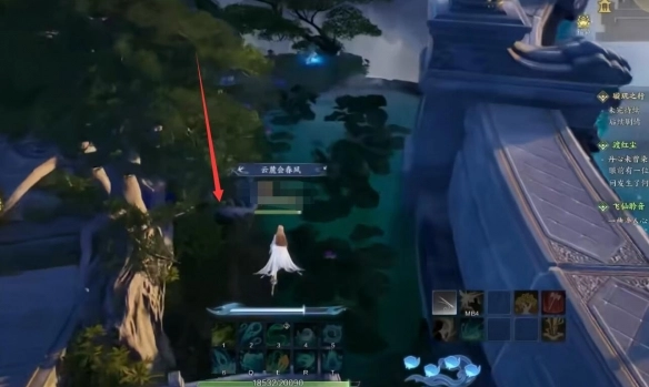 位置六:【青云门 - 青云门】朝着左边方向往前飞行,按图示位置向下飞,到达水潭边。
