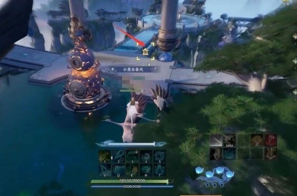 位置八:抵达【青云门 - 通天峰】后,朝着右前方飞行,目的地在圆台边缘。