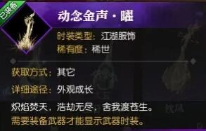 在逆水寒里,有不少能够免费获取的武器外观。其中,武器外观“动念金声·曜”该如何获取呢?其实很简单,打开【外观成长】,选择全部提交【镇魔残卷】,就能得到【动念金声·曜】。接下来,小编就为大家详细介绍《逆水寒手游》中武器外观“动念金声·曜”的获得方法!