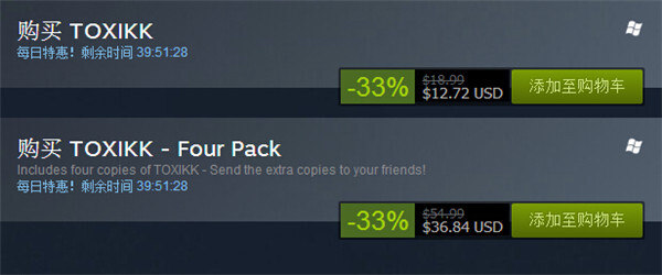 这款游戏除了本体外,四人包也加入了33%的折扣活动,具体情况如下: