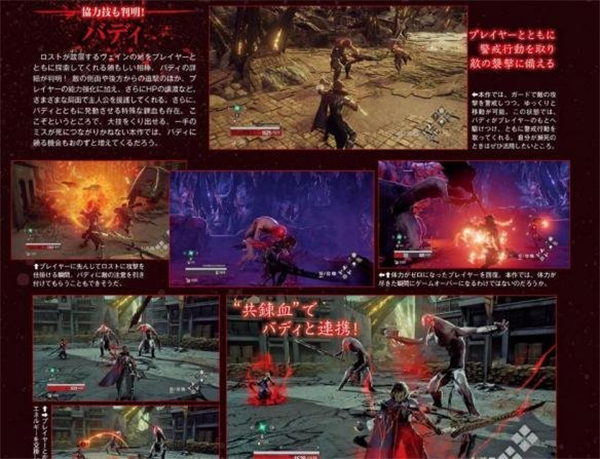 搭档行动包含一项特殊内容,那就是与搭档一同施展的特殊炼血技能「共炼血」。只要搭档在身旁,双方就能合力发动这一技能,借此暂时获取强大的力量。