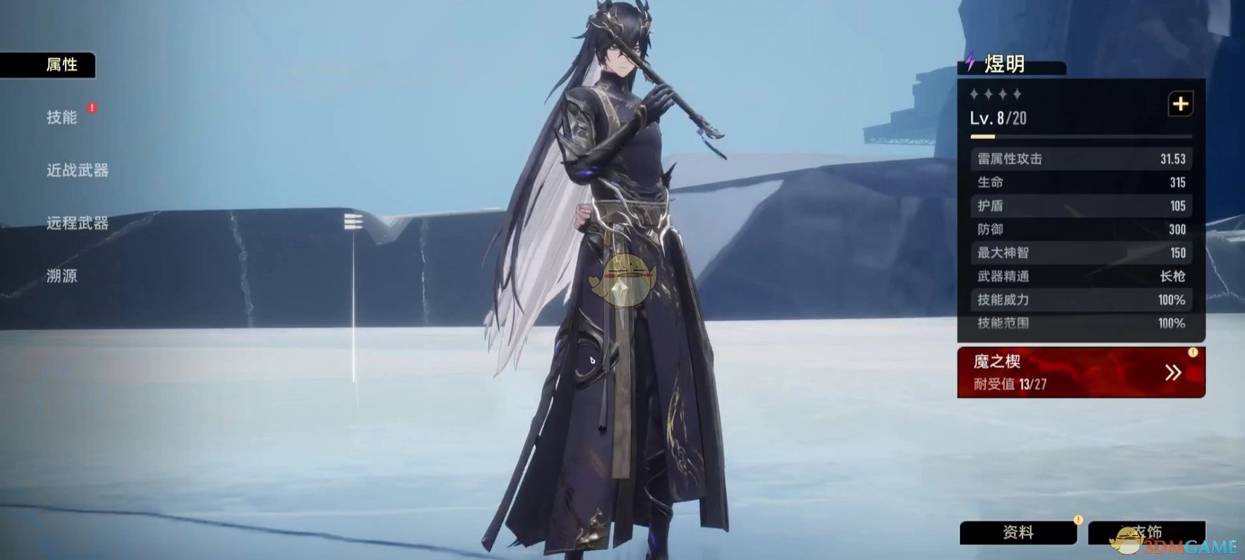 对自身周围的对手造成雷属性伤害,同时召唤出“玄蛟”。在“玄蛟”存续期间,自身遭受伤害时不会出现僵直状态,且所受到的生命值伤害会直接转嫁到被召唤的“玄蛟”身上。此招式可显著提升自身的生存能力。