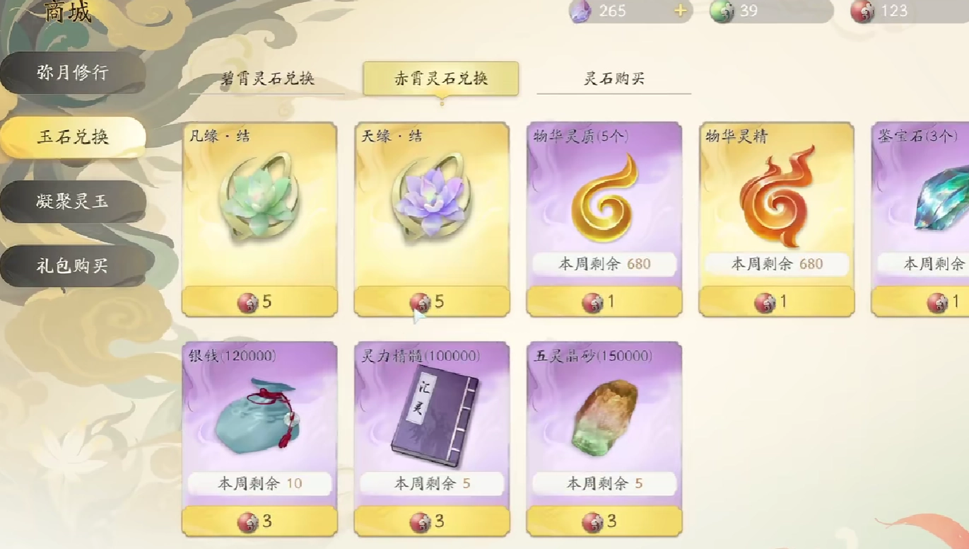 在游戏商城里,玩家能够直接消耗灵石购买天元。此外,玩家还可前往游戏的货币兑换商店,每周有两次限时兑换的机会。