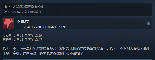 简中地区的差评率为何这么高?追根究底还是产品的呈现效果不够好。作为一款主打二次元风格的类银河恶魔城游戏,没有配音确实是个很严重的问题,再加上按键适配方面存在缺陷,最终使得整体评价不尽如人意。