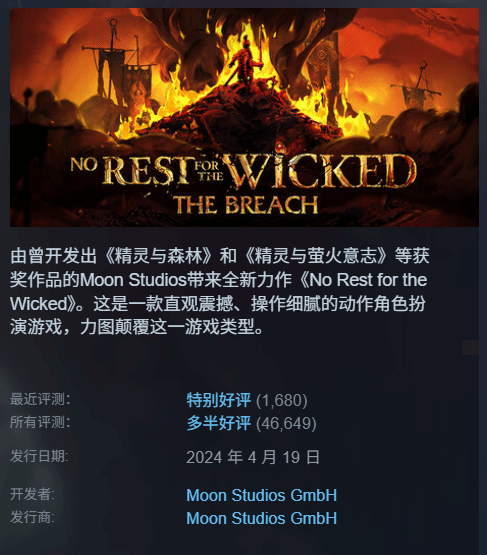 《恶意不息》是Moon Studios开发的一款俯视角动作RPG游戏。该作以高难度、重打击感的战斗为核心,结合了类魂玩法与暗黑风格的刷装体验,十分注重战斗节奏、走位技巧以及资源管理;在画面表现上,它延续了工作室前作《Ori》的美术风格。游戏于2024年4月19日开启抢先试玩,截至目前仍处于这一阶段。